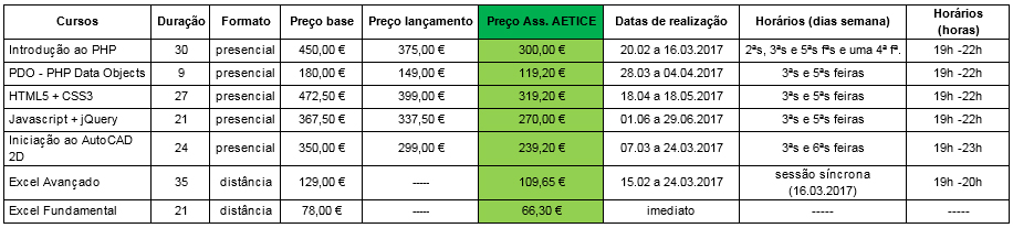 A AETICE realizou um protocolo de cooperação na área das TICE com a Entidade Formadora Certificada – Zona Verde. Este permite condições especiais para os seus associados.